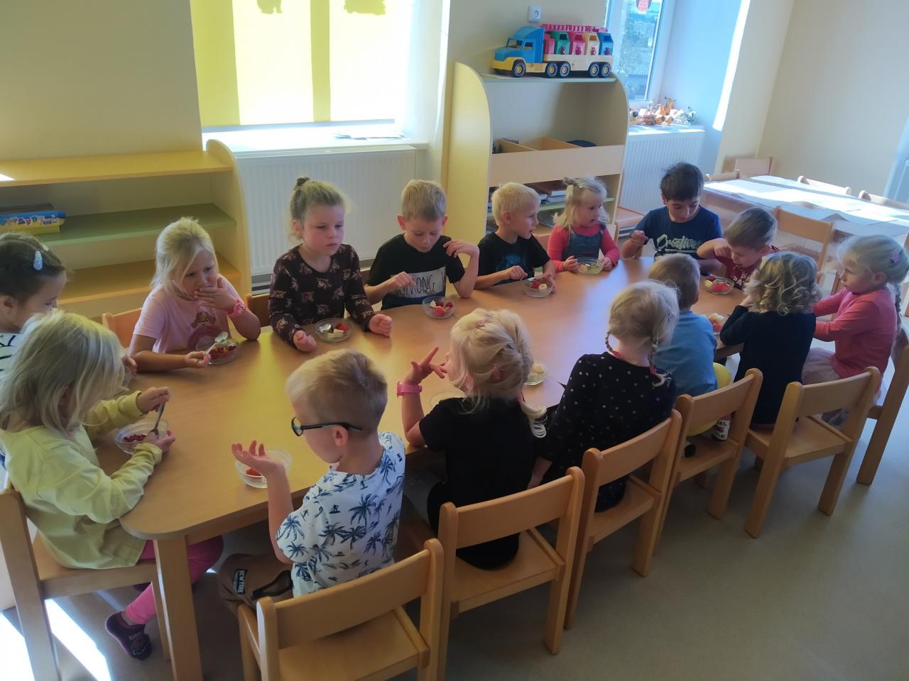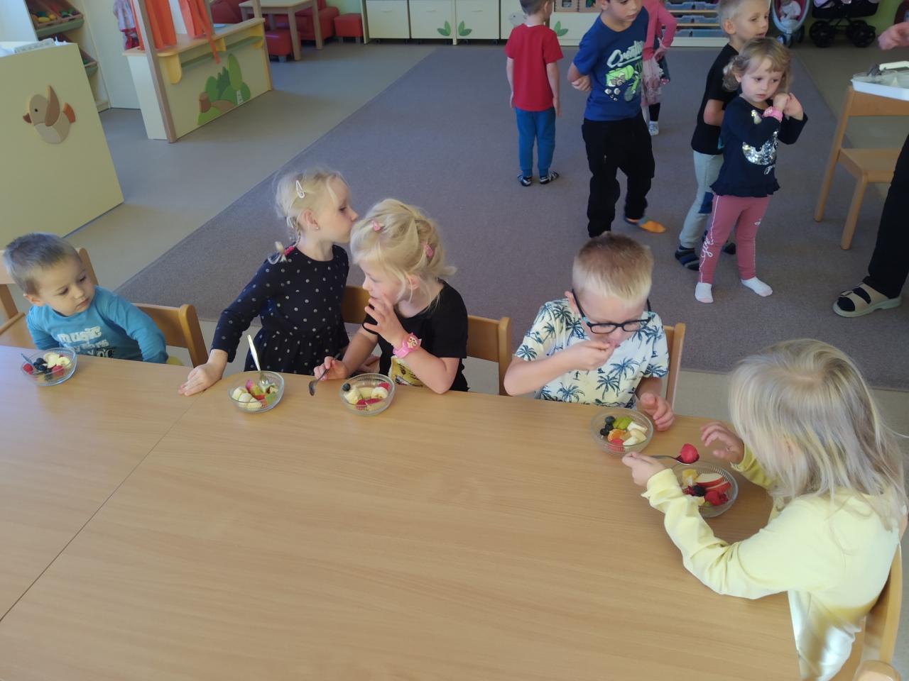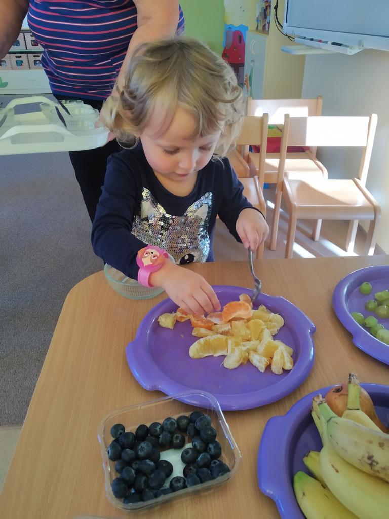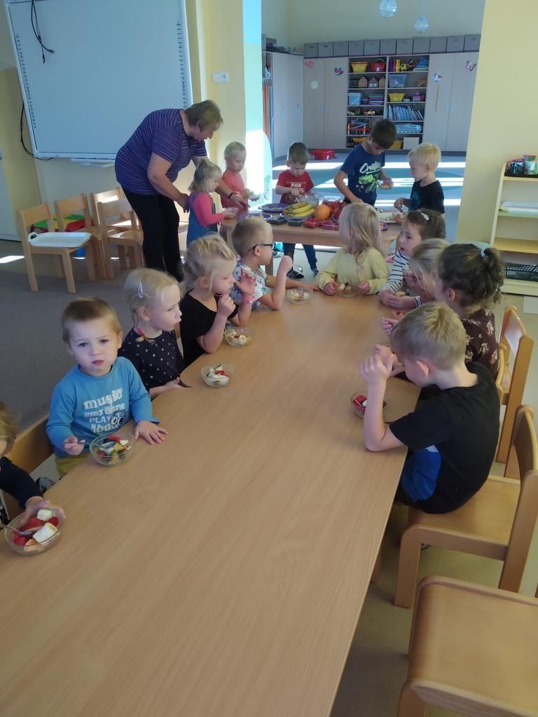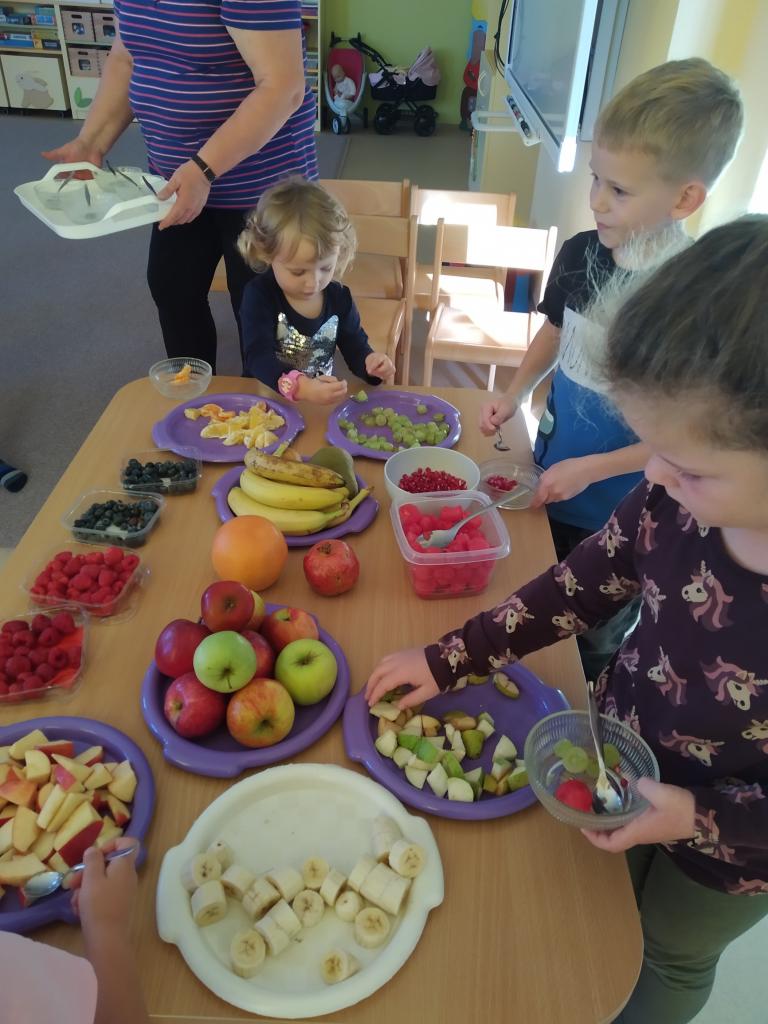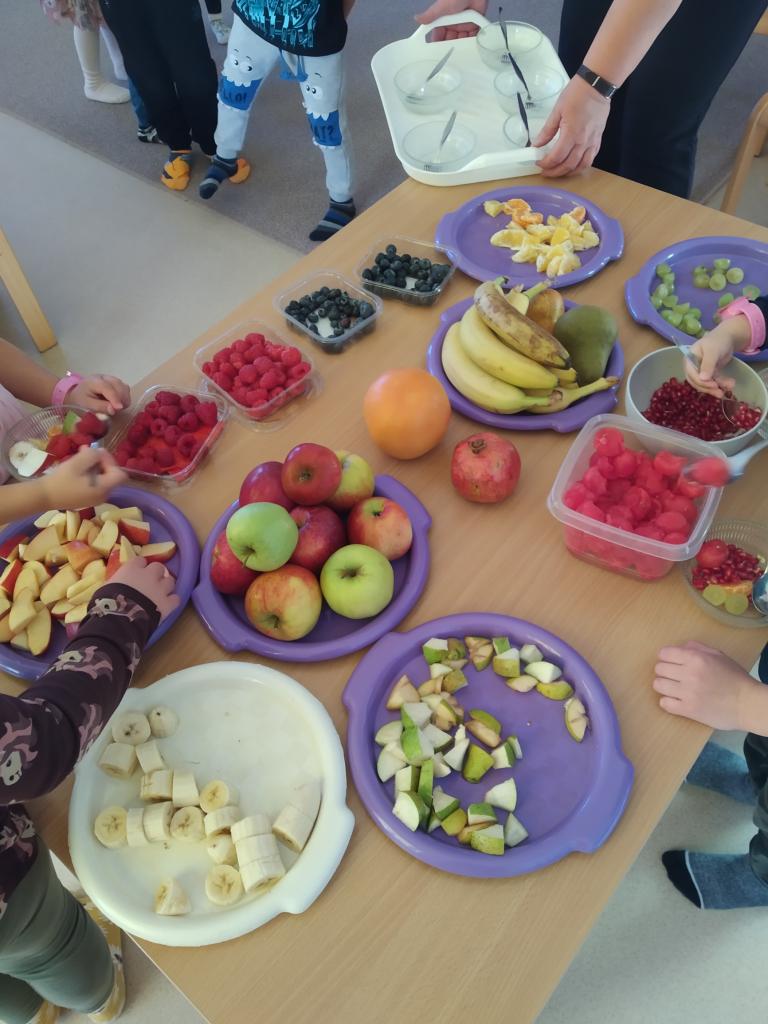 V průběhu týdne jsme si s dětmi povídali o ovoci a zelenině. V pátek si každý namíchal svůj ovocný salátek.